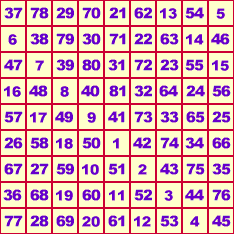 Ein Beispiel aus Bischoff's Mystik und Magie der Zahlen sei hier auszugsweise zitiert; Bischoff analysiert die Lebensdaten Napoleons anhand des nachstehenden Quadrates der Kantenlänge 9:
