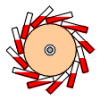 im Inneren einen Mechanismus zur Verstärkung der Antriebswirkung durch