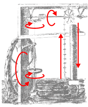 mit einer Pumpe, deren Bauart im Bergbau allgemein verbreitet war. Der Entwurf