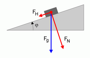 Wie die vektorielle Betrachtung der Kräfte zeigt, resultieren aus der senkrecht nach unten wirkenden Gewichtskraft Fg des Körpers