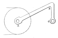 2. | Für das Drehmoment ist nicht der radiale Abstand der Masse zum Drehpunkt von Bedeutung, sondern ausschließlich der Abstand zwischen der senkrecht wirkenden Kraftlinie und dem Drehpunkt. Hier unterliegen viele Laien oft demselben Trugschluß wie der Konstrukteur dieser Fahrradtretkurbel um 1900. So ist bei senkrecht nach unten in C angreifender Kraft der wirksame Hebelarm der Abstand A-C und nicht A-B. | |