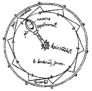 Maschine. Gilbert lief nicht der Idee der immerwährenden Bewegung hinterher, im Gegenteil: In seinem Buch de Magnete bestreitet er die Funktionsfähigkeit einer solchen Apparatur (Cap. XXXV, p. 107). |