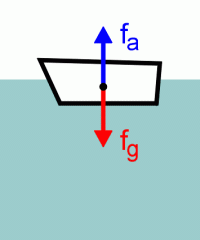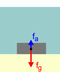 | Dichte ist kleiner als die der Flüssigkeit Objekt schwimmt auf, da die Auftriebskraft des vollständig eingetauchten Objektes größer ist als seine Gewichtskraft. |