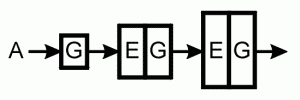 A=Anfangsantriebsenergie, E=Elektromotor, G=Generator
